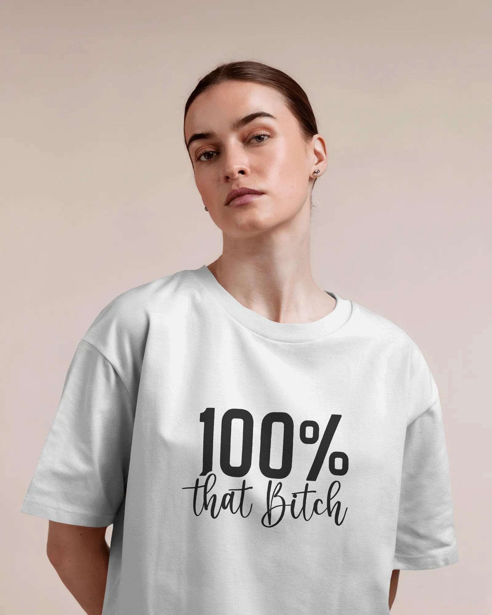 Warning: This T-shirt doesn’t come with a filter. The 100% Bitch tee is for the bold, the unbothered, and the fabulous few who own their attitude like a crown.