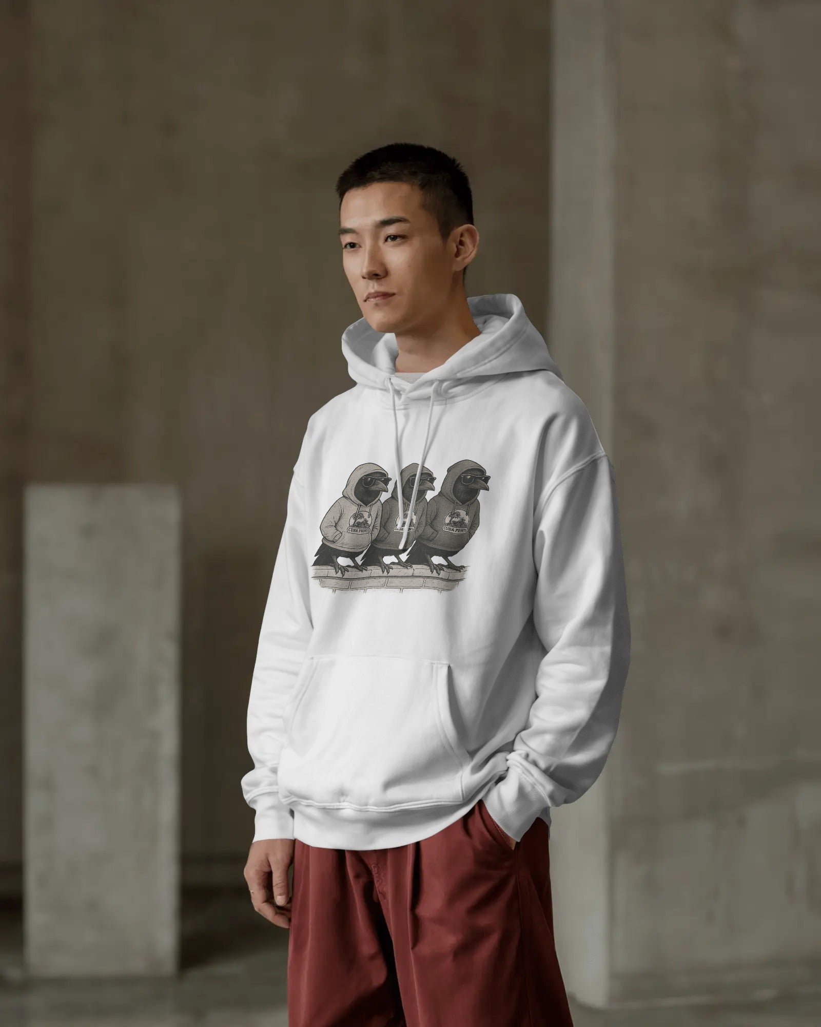 Printed on a clean, classic white hoodie, this design pops with attitude—making it the perfect go-to for casual days that still call for serious style. Whether you're heading to a gig, grabbing coffee with friends, or just want to add some graphic heat to your everyday look, the Cool Crows bring the drip, the swagger, and the unexpected twist that sets you apart.