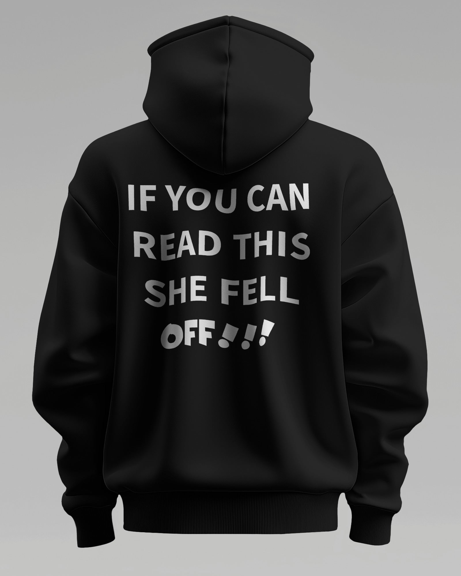 Riders, gear up for a laugh and a little bit of mischief with the She Fell Off! Biker Hoodie. Featuring the hilarious and cheeky phrase, "If you can read this, she fell off!!!" emblazoned across the back, this hoodie brings a dose of humor to your ride. Whether you're the one holding steady on the bike or the rider who just might be testing gravity a little too much, this hoodie is sure to get a chuckle from your crew.