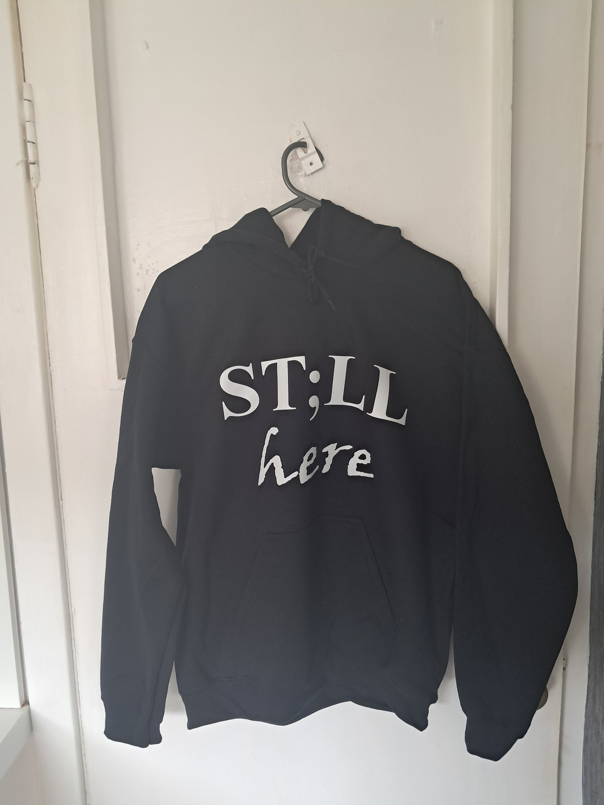 🖤 Available in “Still Here” or the minimalist stylized version: “St;ll Here”—a nod to the imperfect, interrupted, but ongoing journey.